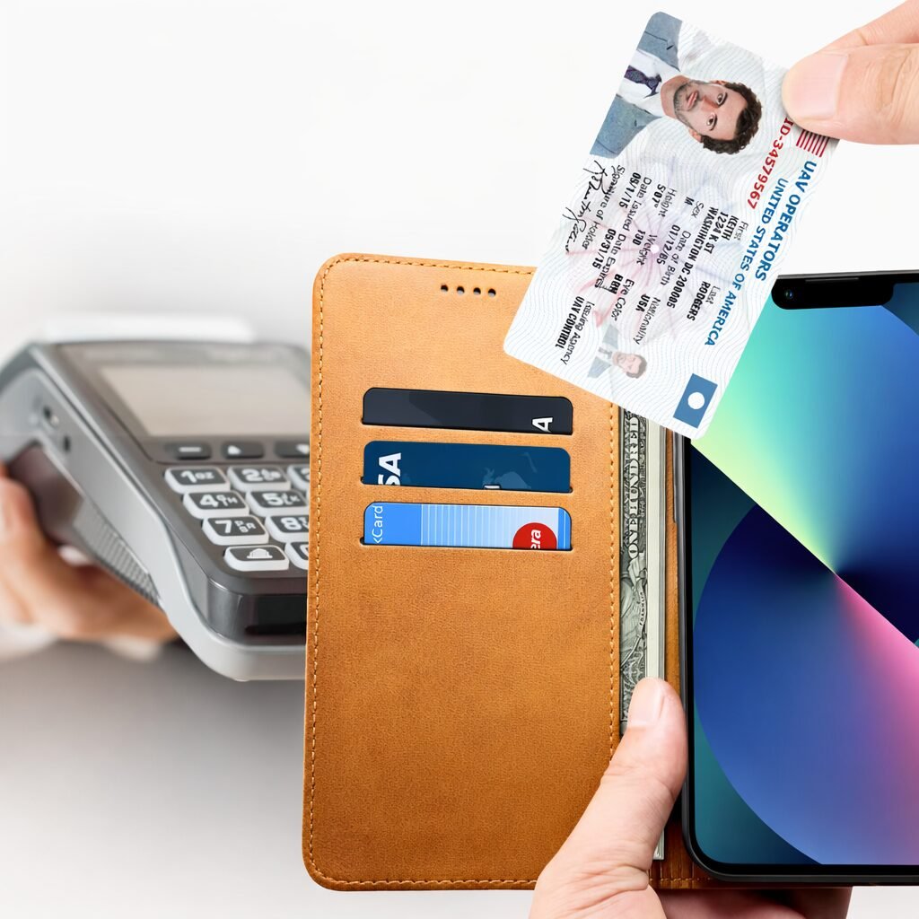 Coque Portefeuille en Cuir Vegan & Support Intégré