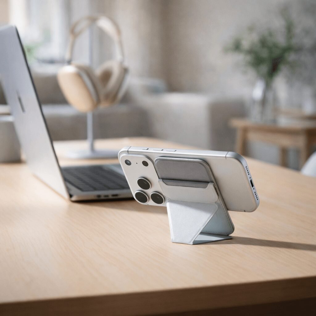Un porte-cartes MagSafe élégant et fonctionnel, conçu pour garder l’essentiel à portée de main. Fixation magnétique puissante, cuir soigné et support intégré pour un usage quotidien fluide, au bureau comme en déplacement.