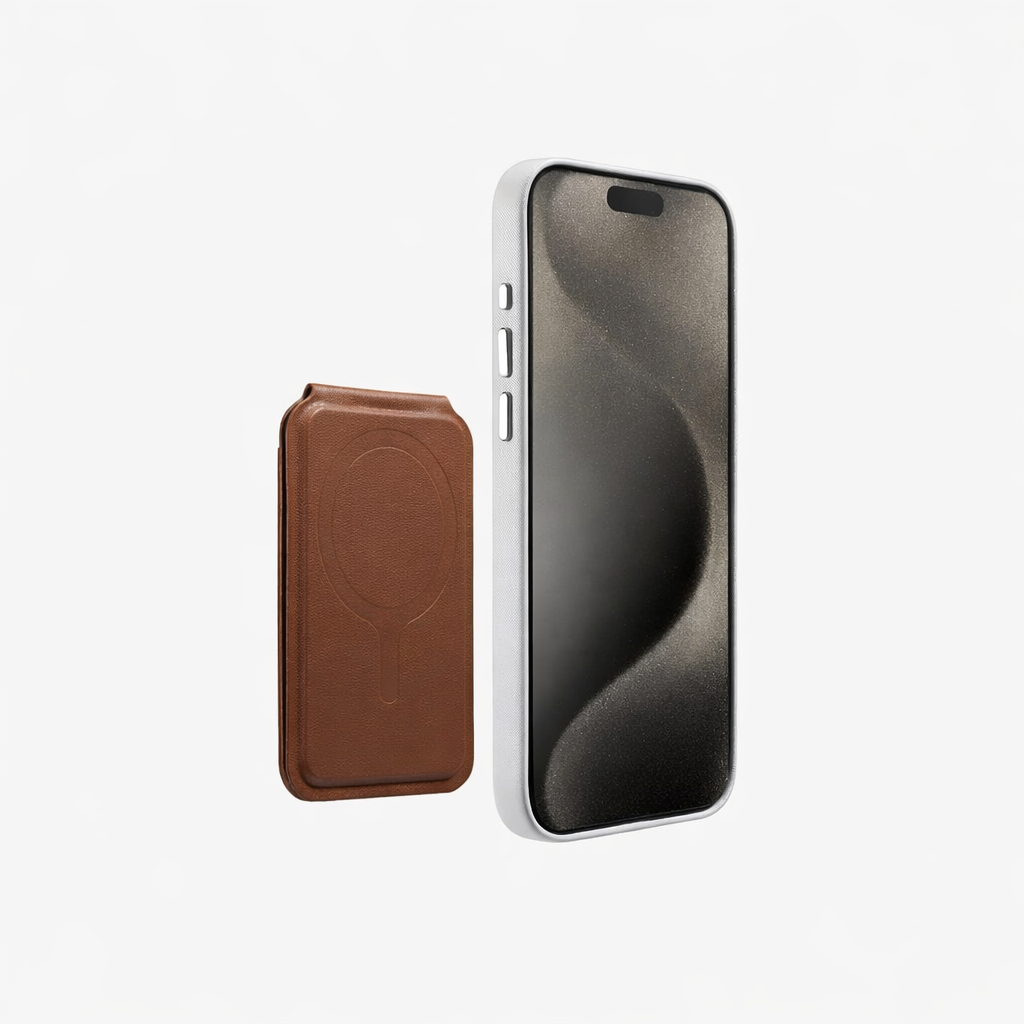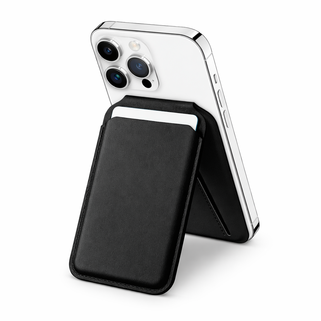 Portefeuille magnétique MagSafe au design compact et élégant, conçu pour se fixer instantanément à votre iPhone. Doté d’un support pliable discret, il permet de poser votre téléphone en mode vertical ou horizontal, tout en gardant vos cartes essentielles à portée de main. Pratique, sécurisé et pensé pour un usage quotidien.