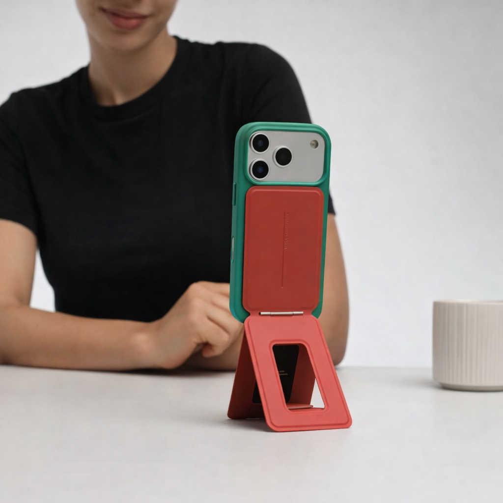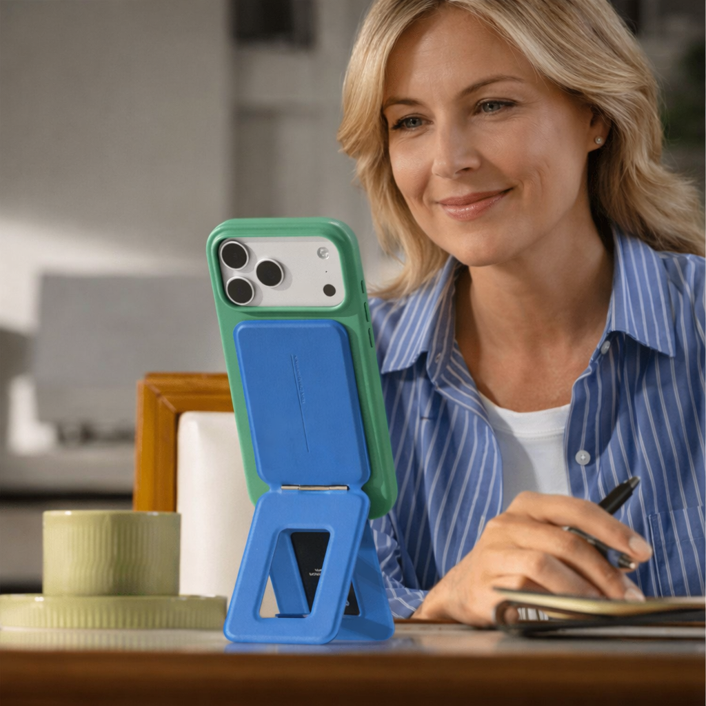 Le Trépied Snap WAYFOLD transforme instantanément votre iPhone en un support stable et élégant. Conçu pour s’adapter à tous les usages, il vous accompagne aussi bien au bureau, à la maison qu’en déplacement.